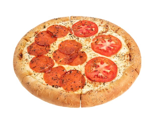 Pizza mediana en 6 Porciones: Mitad Pepperoni + Mitad Napolitana